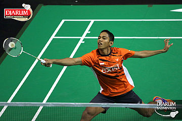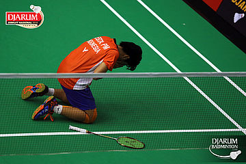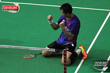 Selebrasi kemenangan Hendra Aprida Gunawan (Djarum Kudus)