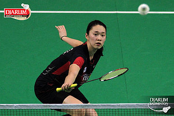 Ga Eun Kim (Korea) mengembalikan shuttlecock