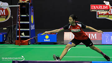 Nandini Putri Arumni (PB Djarum, Kudus) menyambut shuttlecock
