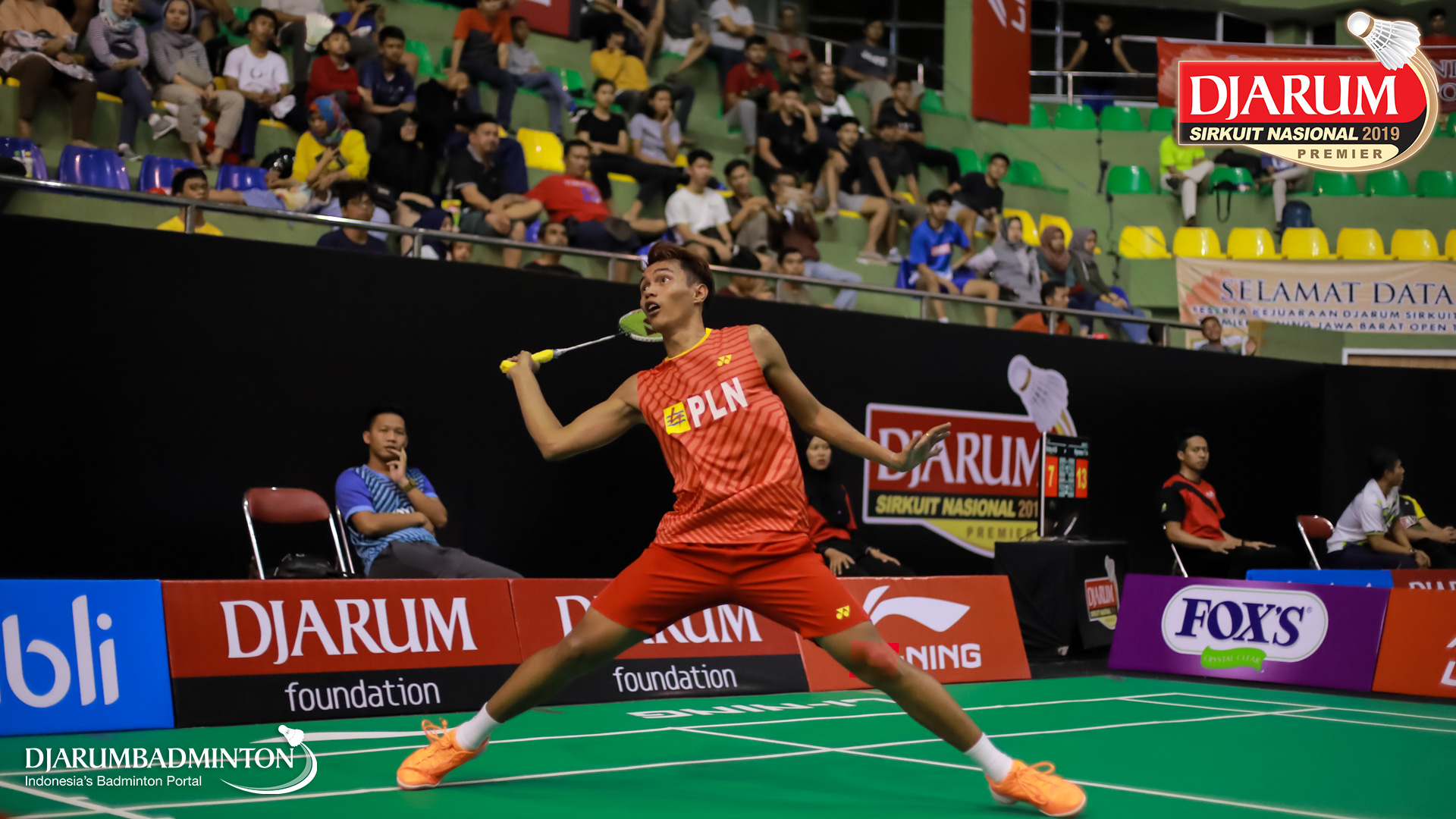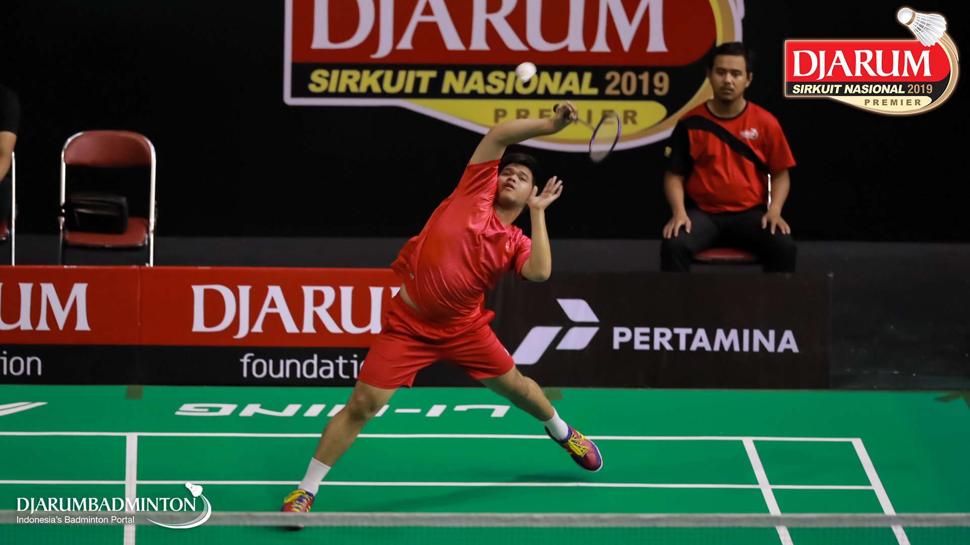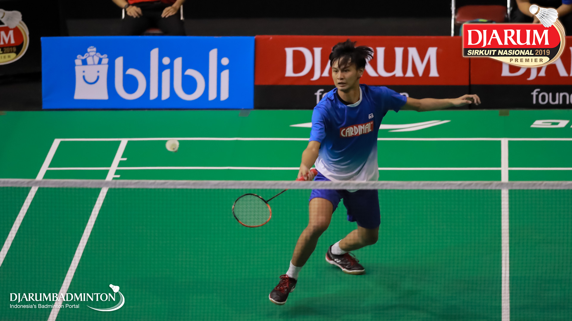 Auditya Alpha Hidayat (Mutiara Cardinal, Bandung) bersiap menyambut shuttlecock
