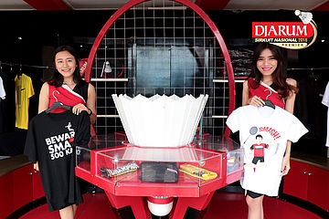 Dua User Berpose Di Booth Merchandise Djarum Sirkuit Nasional