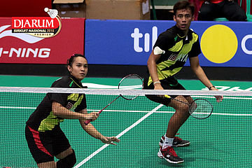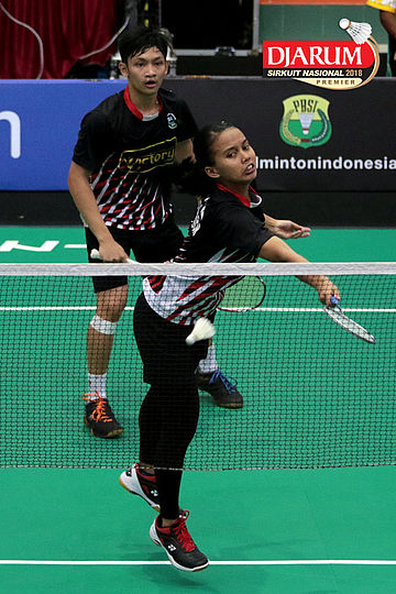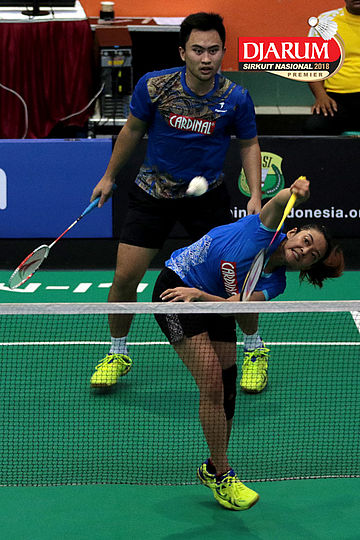 Lukhi Apri Nugroho/Ririn Amelia (Berkat Abadi/PB Djarum Kudus) Mengembalikan Shuttlecock