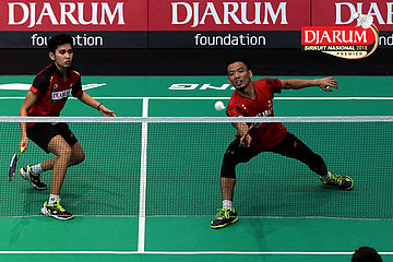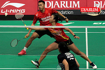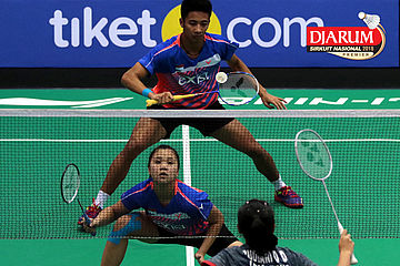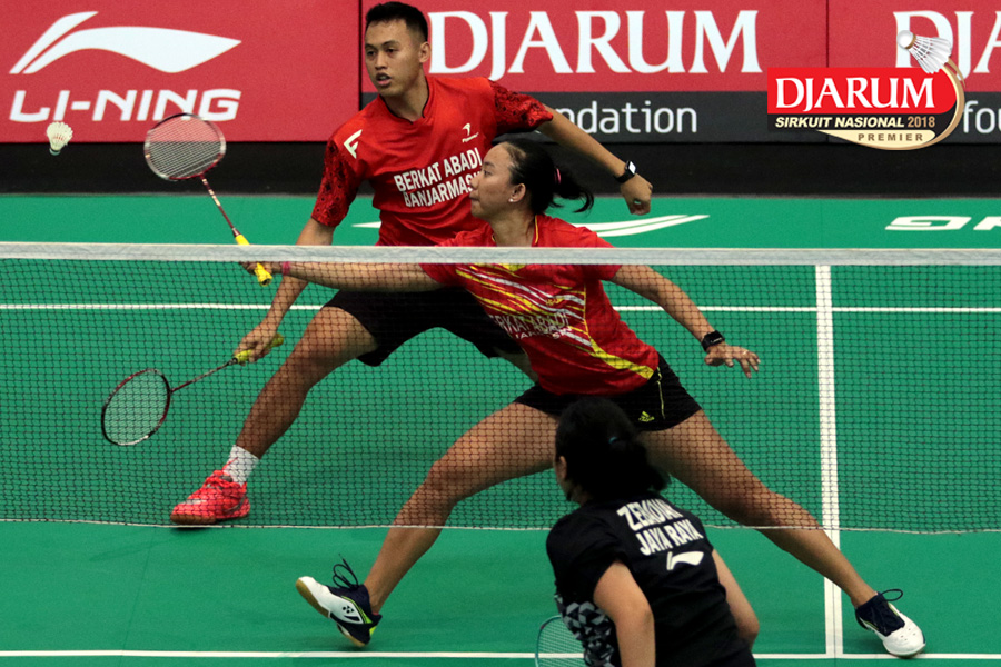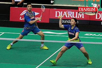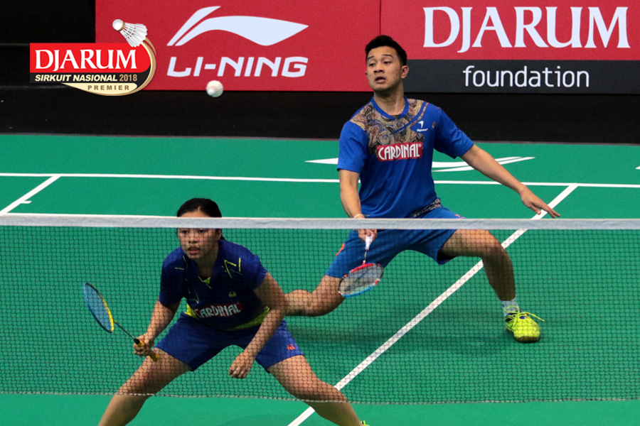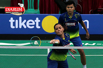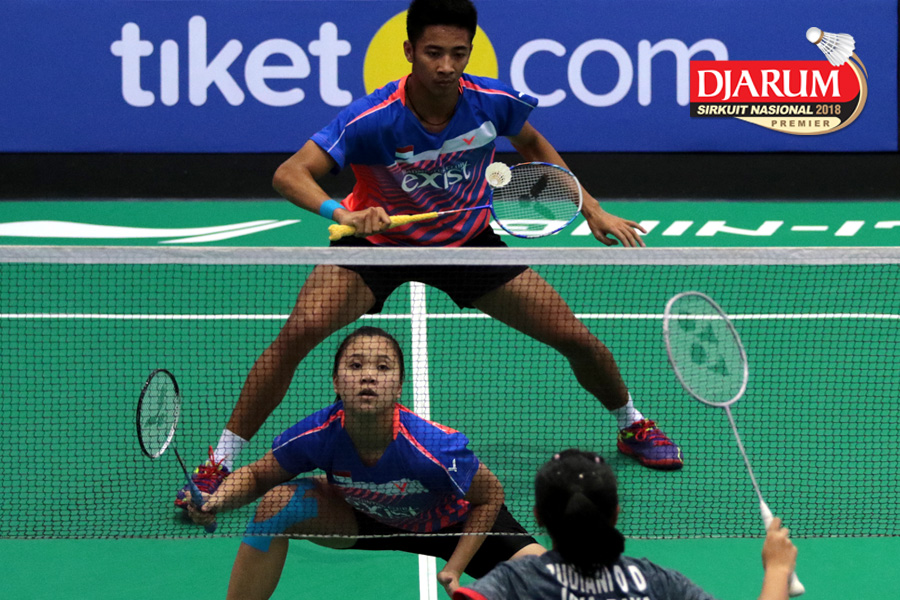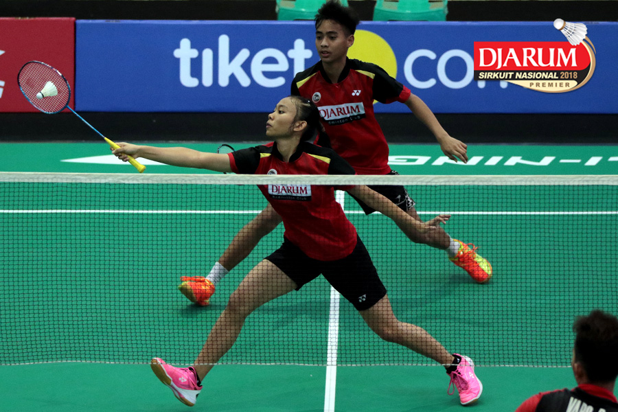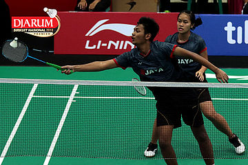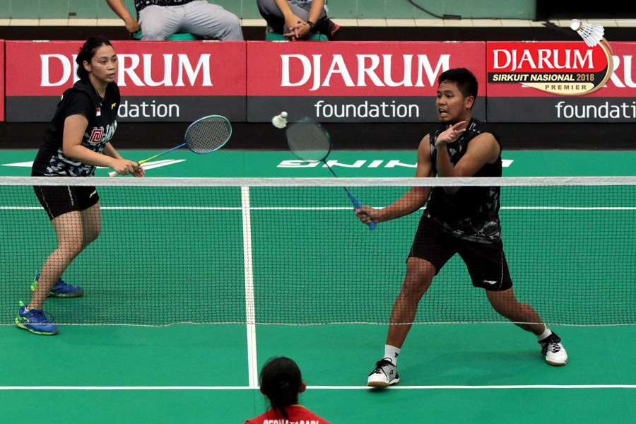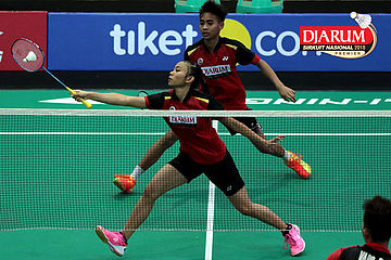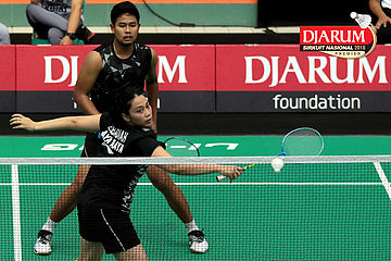 Lukhi Apri Nugroho/Ririn Amelia (Berkat Abadi/PB Djarum Kudus) Mengembalikan Shuttlecock