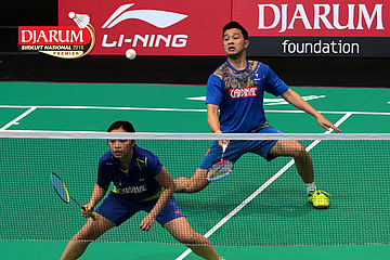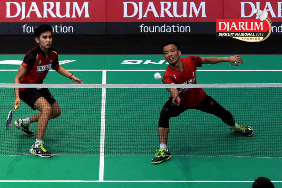 Rahmat Hidayat/Gity Gabriel Rambing (PB Djarum Kudus) Mengembalikan Shuttlecock