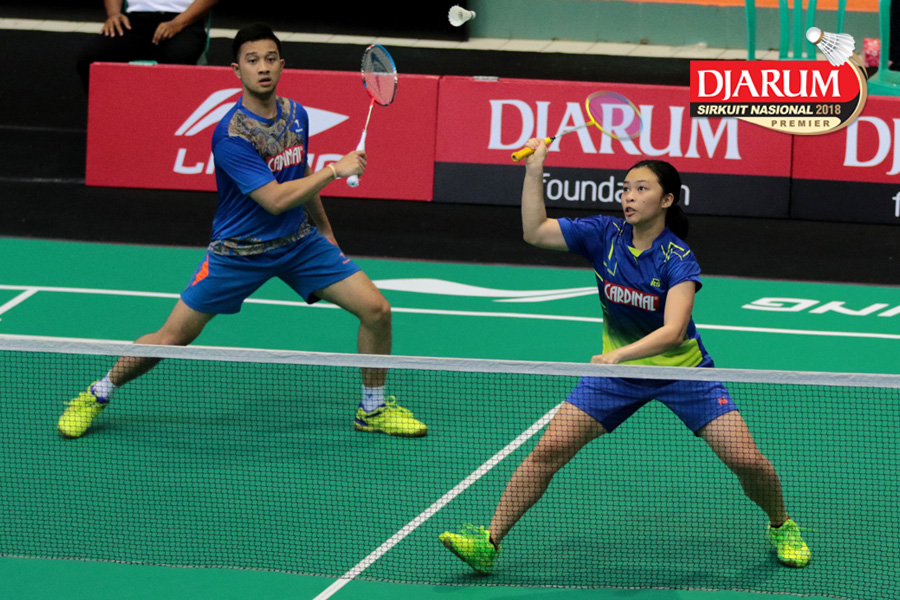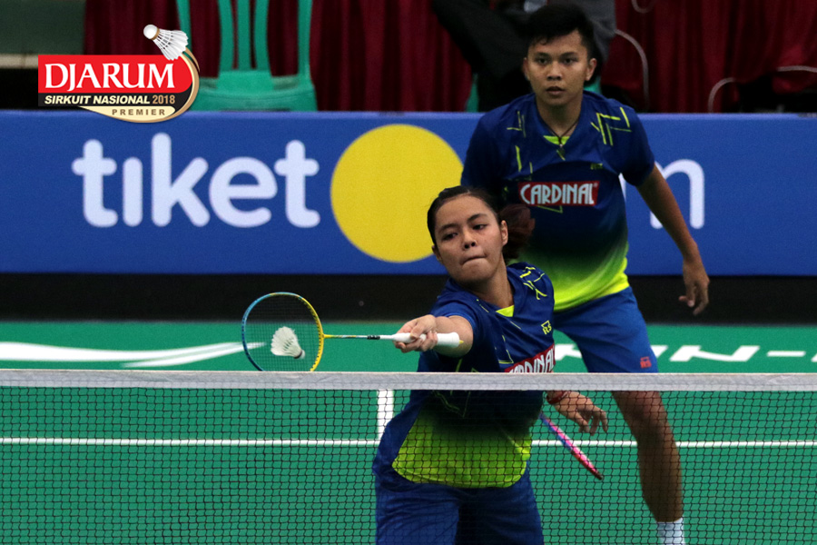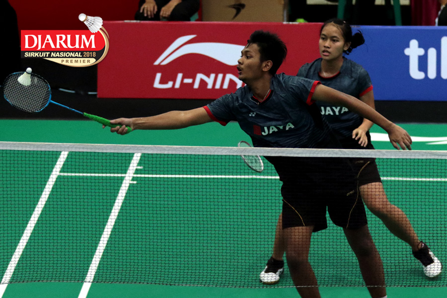 Irfan Fadhillah/Pia Zebadiah Bernadeth (Jaya Raya) Mengembalikan Shuttlecock