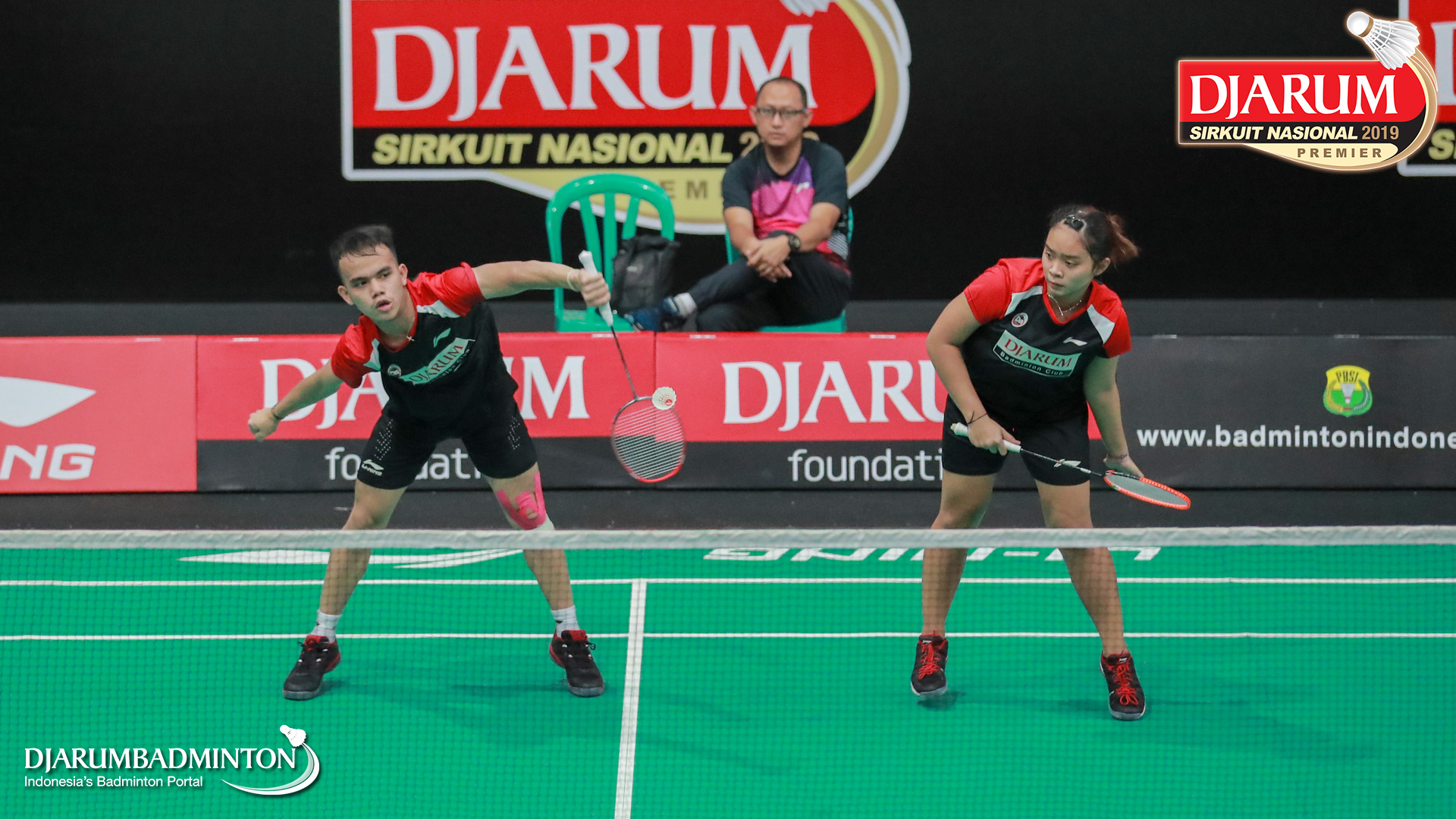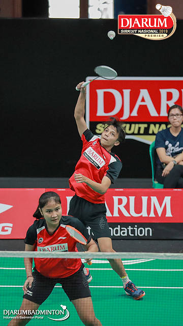 Rian Canna Varo+Berliona Alma Pradisa (PB Djarum, Kudus) bersiap menyambut serangan