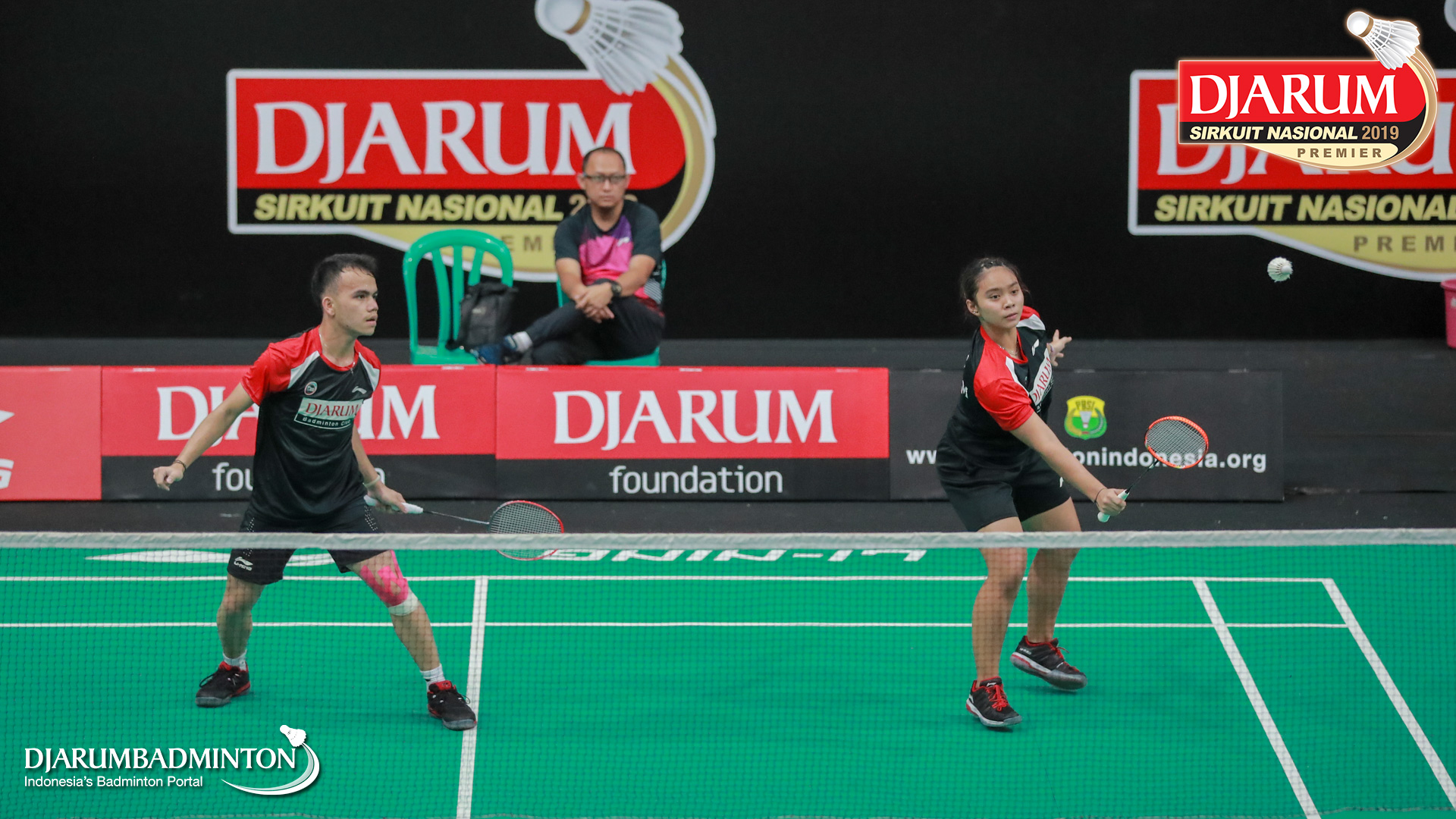 Genta Gusti Pidriansyah+Alya Novita Fitriyani (PB Victory Bogor, Jaktim) menyambut serangan