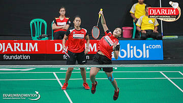 Khusnul Khatimah+Putri Giani Nabila Salwa (PB Djarum, Kudus) mengembalikan serangan