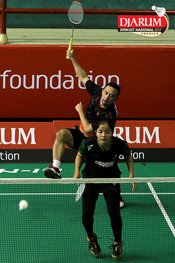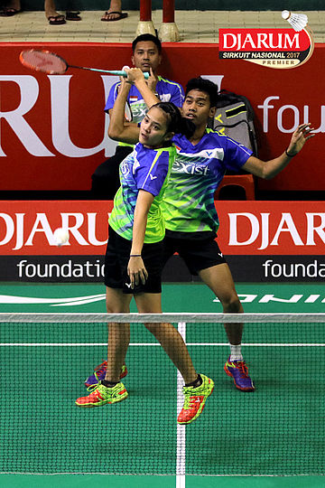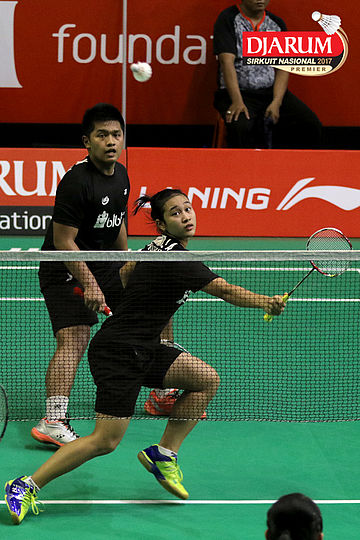Renaldi Samosir/Hediana Julimarbela (Exist) Mengembalikan Shuttlecock