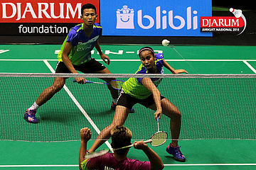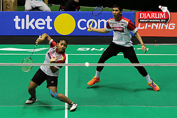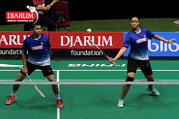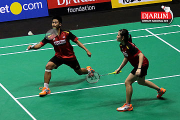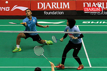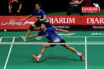 Muhammad Nur Hafizi/Mia Dian Nurlia (PB Djarum Kudus) Menyambar Pengembalian