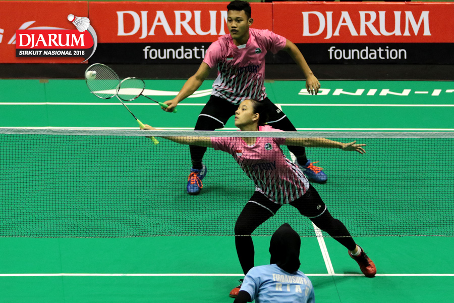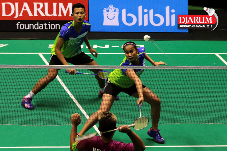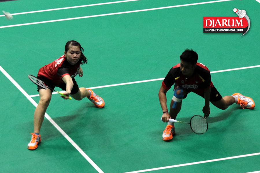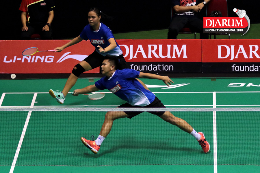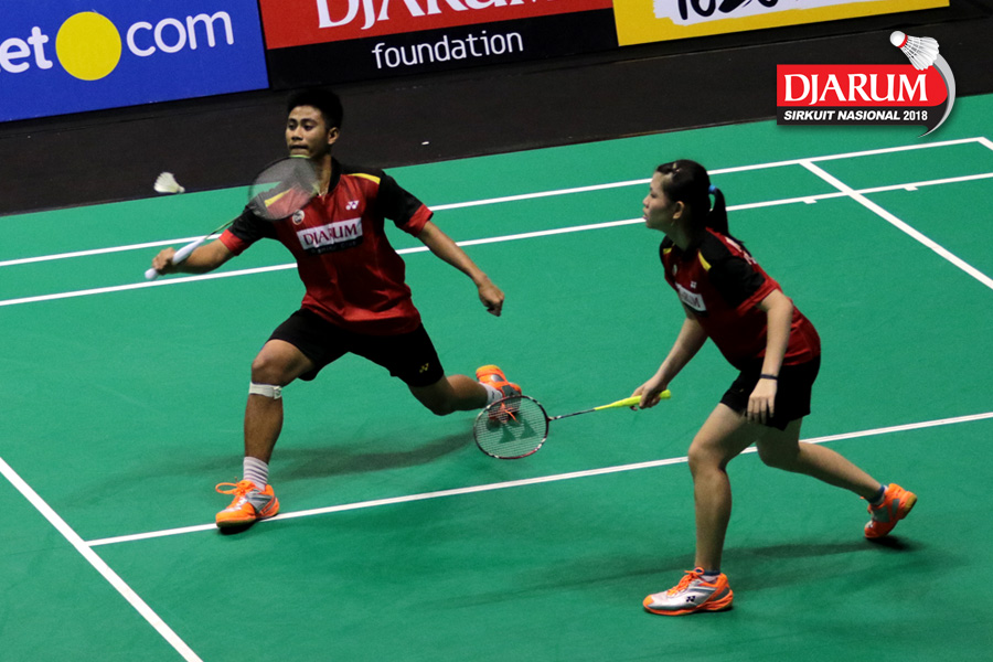 Yoggi Pamungkas/Helena Ayu Puspitasari (PB Djarum Kudus) Mengembalikan Shuttlecock