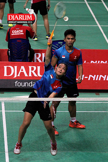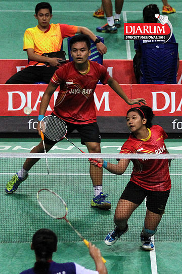Reza Dwicahya/Tutut Novi (Jaya Raya) bersiap menyambut pengembalian