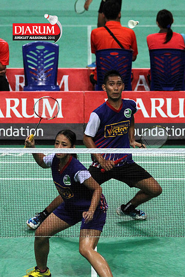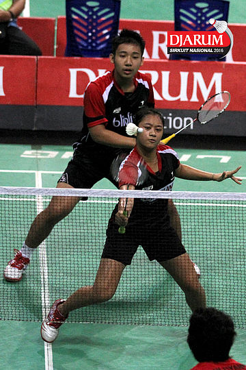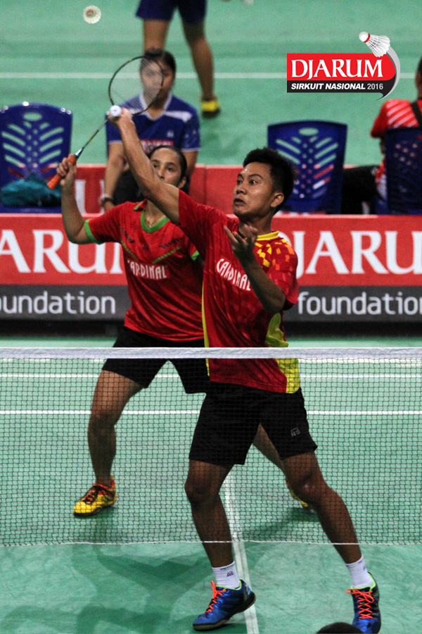 Amri Syahnawi/Marissa Vania (SKO Ragunan/Tangkas) menyambar pengembalian tanggung