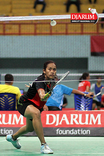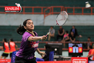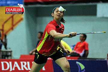 Aprilia Yuswandari (Semen Gresik) mengembalikan shuttlecock