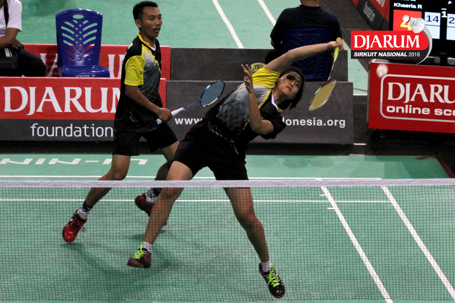 Alvin Musaddiq/Khaeriah Rosmini (Pelatprov SULSEL) melepaskan serangan