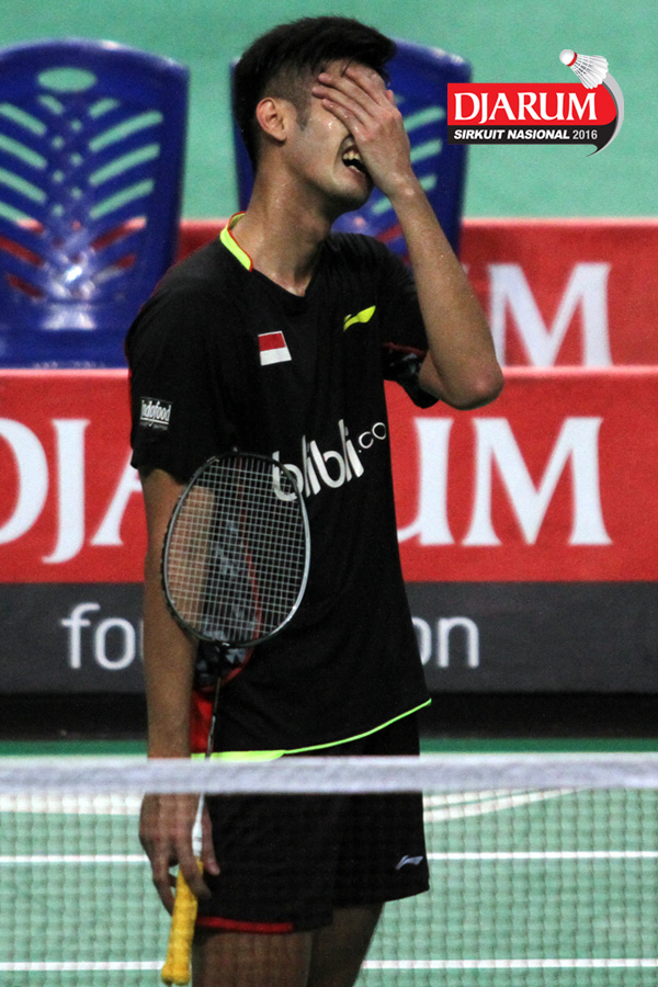 Ekspresi kekecewaan Riyanto Subagja (Djarum Kudus) saat kehilangan poin