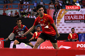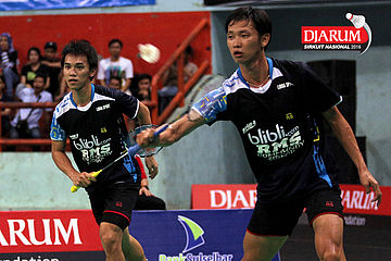 Fran Kurniawan/Fernando Kurniawan (Djarum Kudus) menghadang serangan