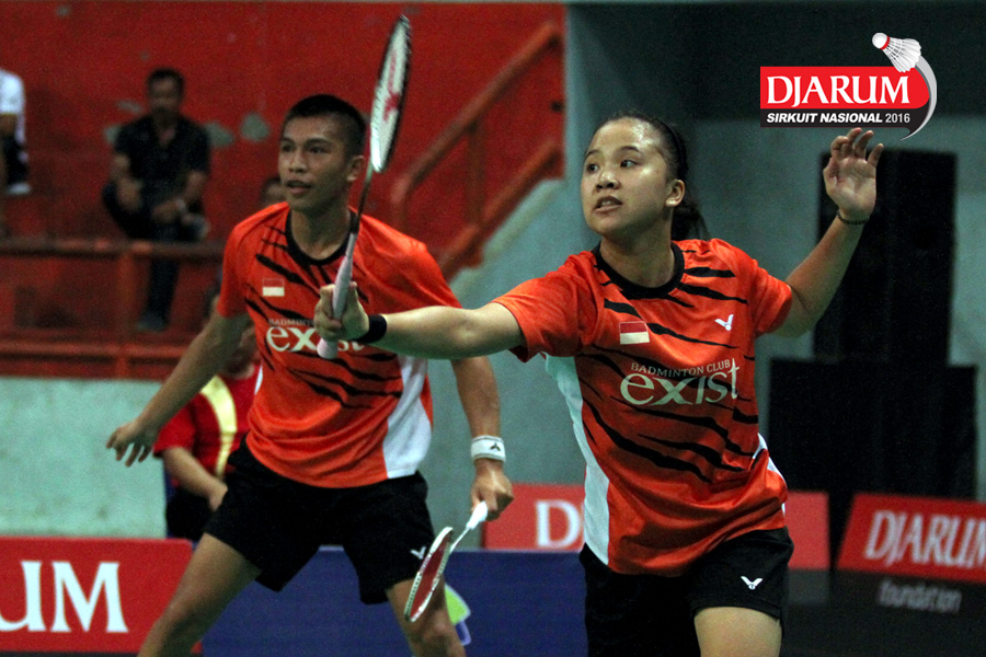 Timoti Wusian/Beverly Gabriella (Exist) mengembalikan shuttlecock