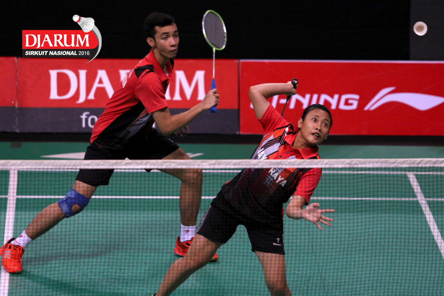 Alfandy Rizki/Phita H. Mentari (Jaya Raya) bersiap menyambar pengembalian tanggung