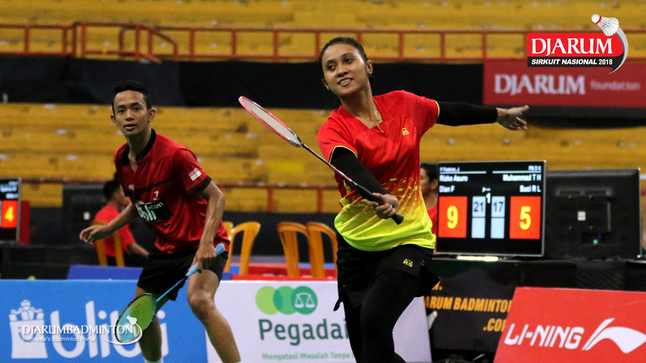 Aldi Efendi/Dianita Saraswati (Telkom Bandung/Mutiara Cardinal) jatuh bangun menghadang pengembalian