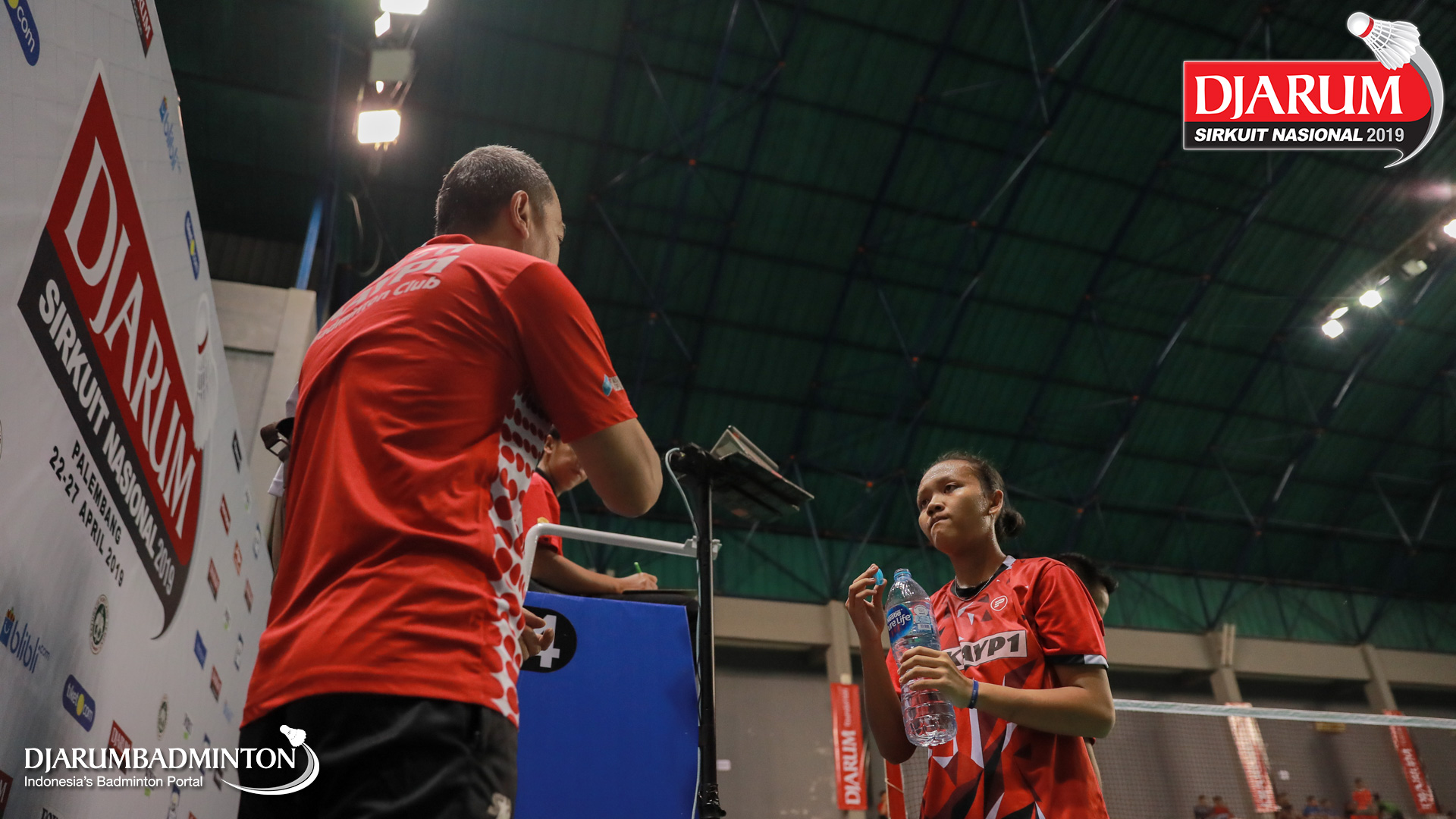 Fauziyah Fahma Hartono (Kaypi Badminton Club, Bogor) mendapat pengarahan dari pelatih