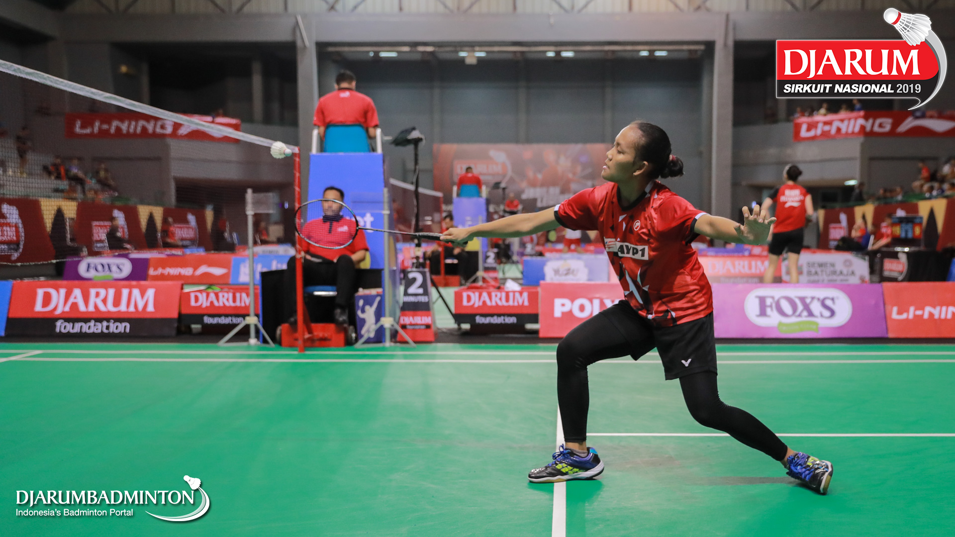 Siti Sarah Azzahra (Exist Badminton Club) menyambut serangan