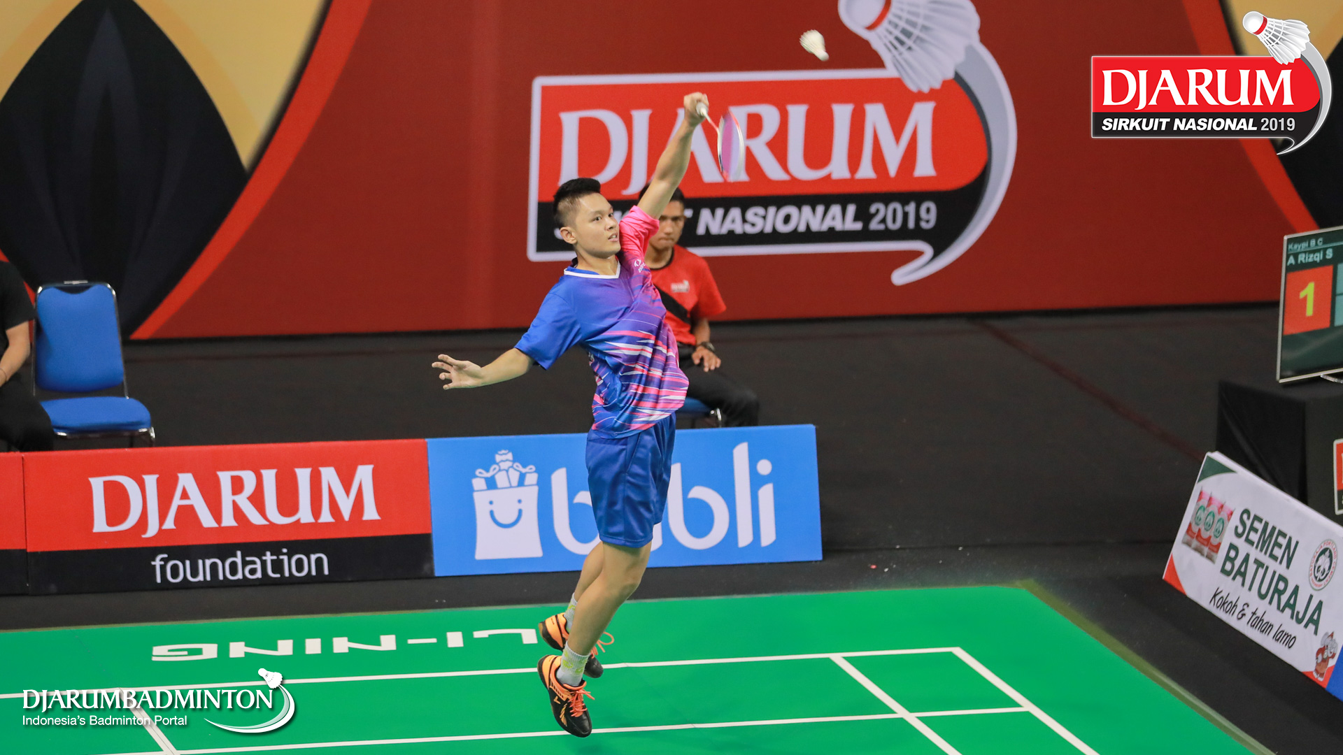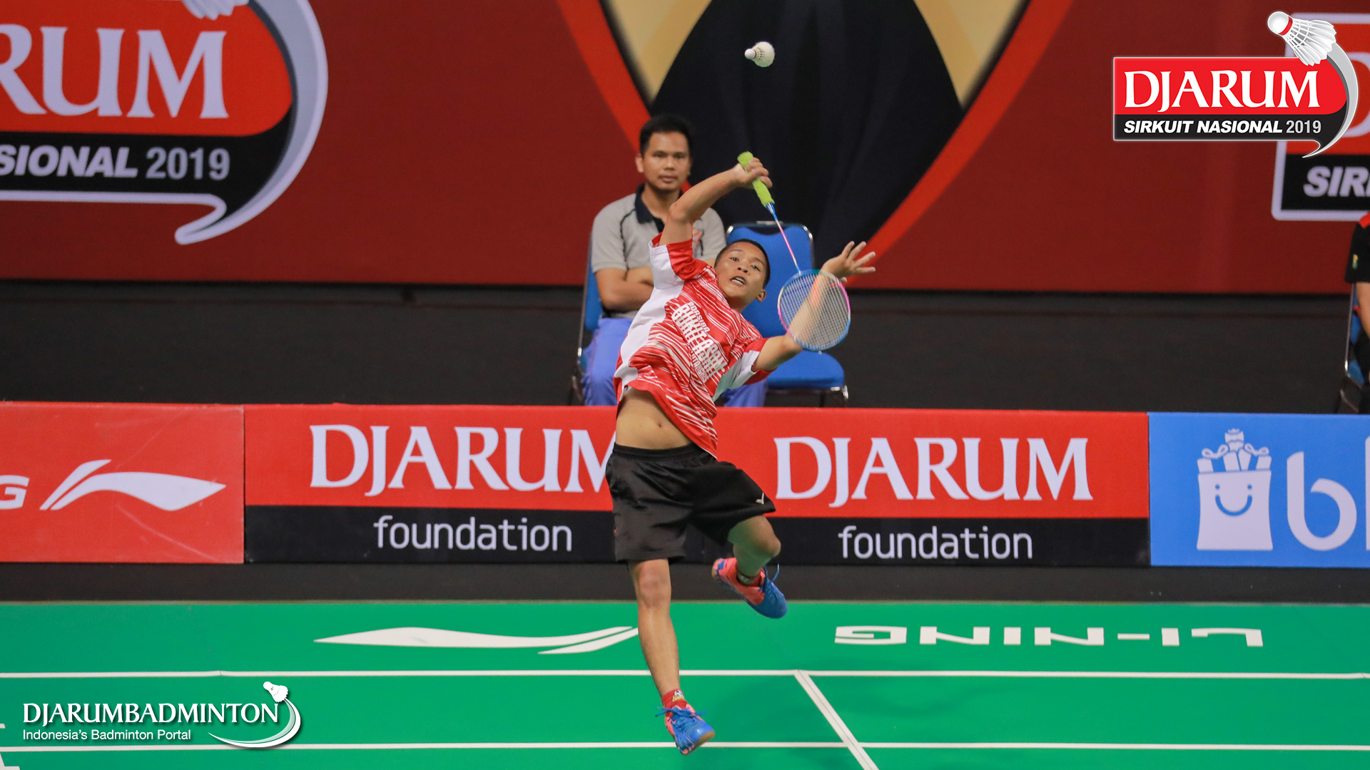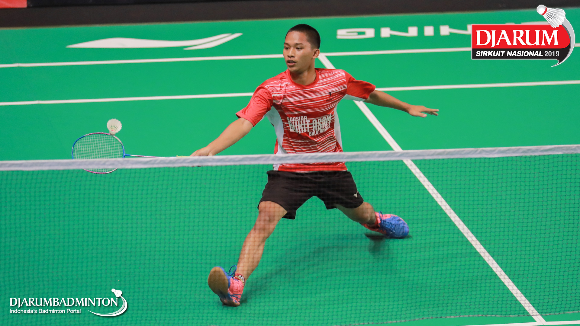 Aivin Setiajaya (Asep Suharno Badminton Academy, Jakpus) mengembalikan serangan