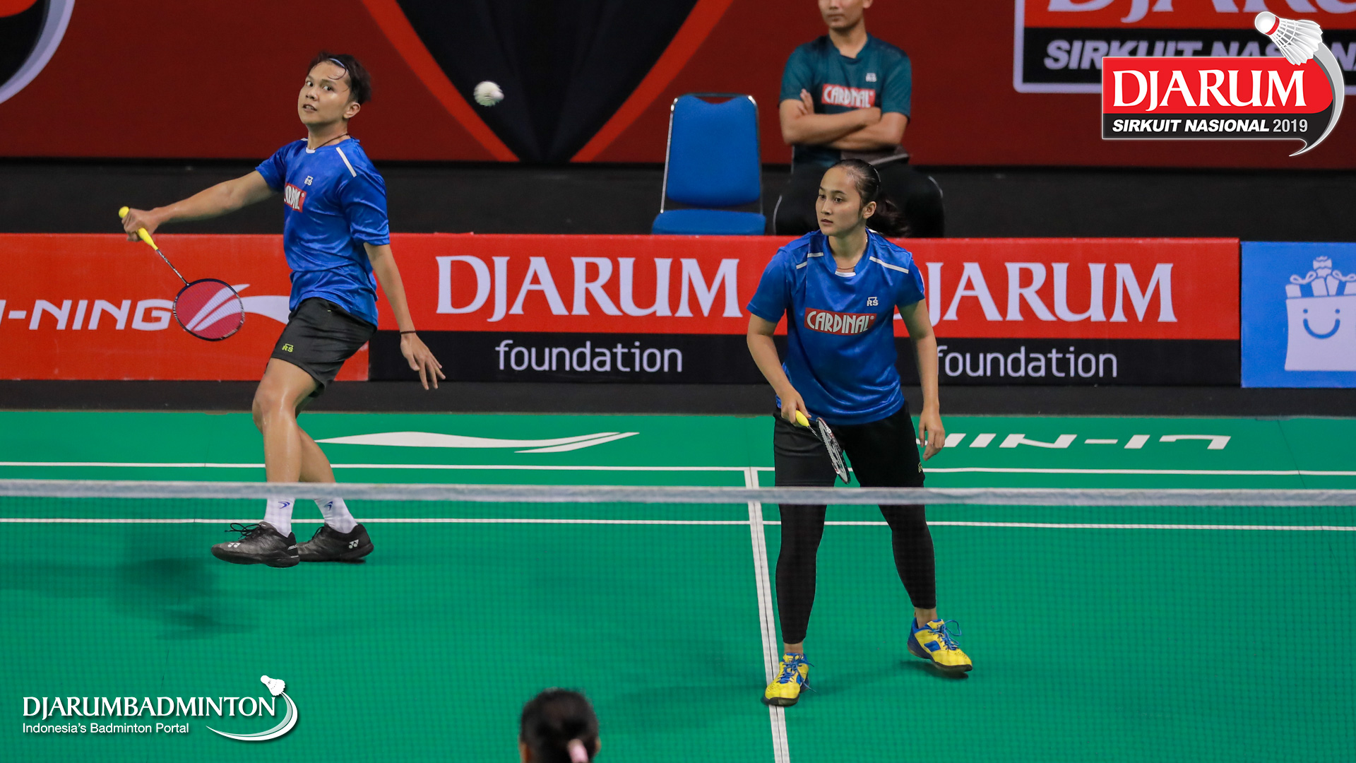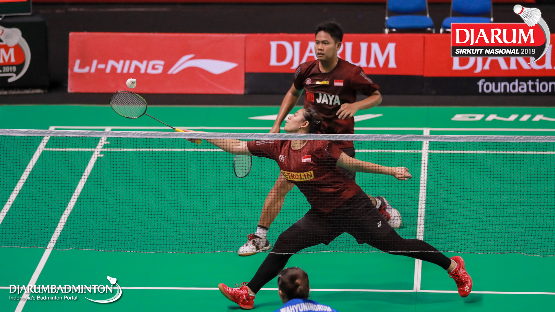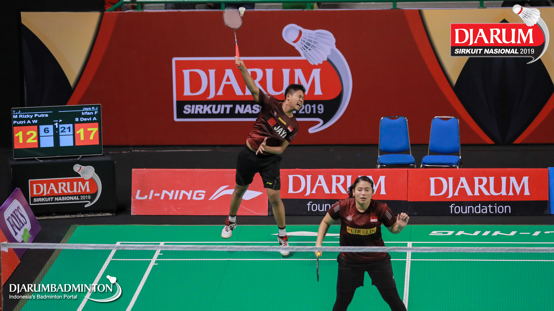Irfan Fadhillah+Shela Devi Aulia (Jaya Raya Jakarta) mengembalikan shuttlecock