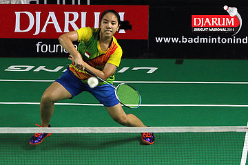 Ana Rovita (Pertamina Fastron) melepaskan serangan.