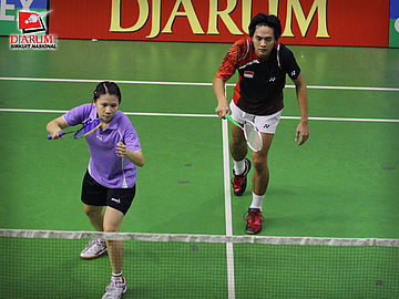 Ganda Campuran Dewasa bersiap menerima kok dari lawan