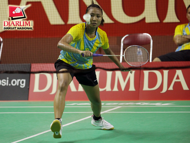 Pebulutangkis unggulan pertama tunggal dewasa putri, Ganis Nur Rahmadani (Pertamina Indonesia) menyambut serve dari Rusydina Antardayu (Tangkas Specs).