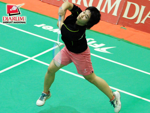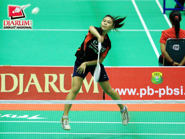 Pemain tunggal taruna putri, Arinda Sari Sinaga (Djarum Kudus) yang sedang bertanding melawan Dewi Mirani (Bintang Jati).