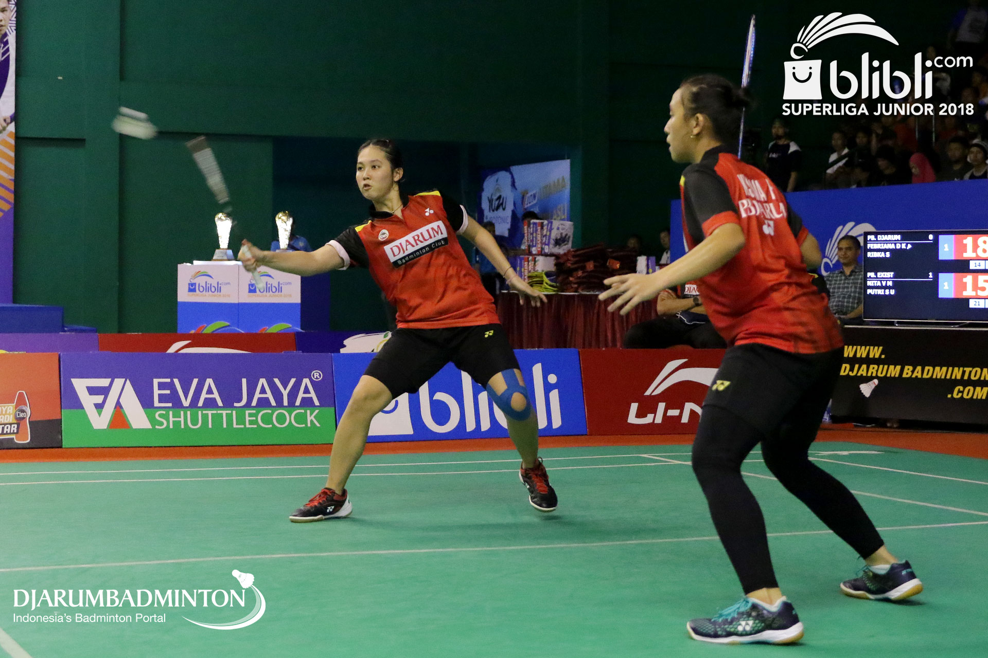 Febriana Dwipuji Kusuma/Ribka Sugiarto (PB. DJARUM) berusaha mengembalikan serangan