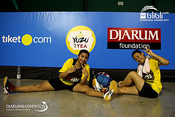 Jauza Fadhilah Sugiarto/Pitha Haningtyas Mentari (Jaya Raya Jakarta) Berpose Selepas Bertanding