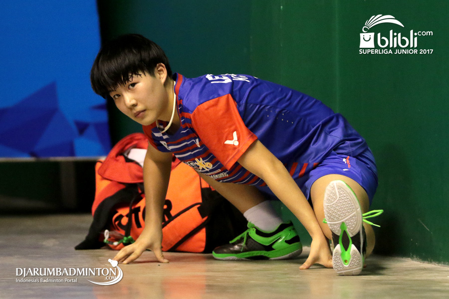 Lee Eun Ji (Korea) Melakukan Peregangan Usai Bertanding
