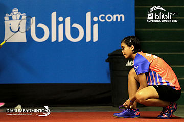 Diana Setiyo Ningsih (Exist Badminton Club) Mengikat Tali Sepatu Sebelum Memulai Pemanasan