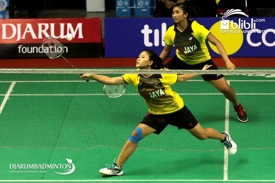 Jauza Fadhilah Sugiarto/Pitha Haningtyas Mentari (Jaya Raya Jakarta) Mengembalikan Shuttlecock