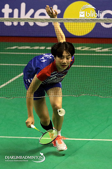 Ahn Chae Hyun (Korea) Berusaha Mengembalikan Shuttlecock