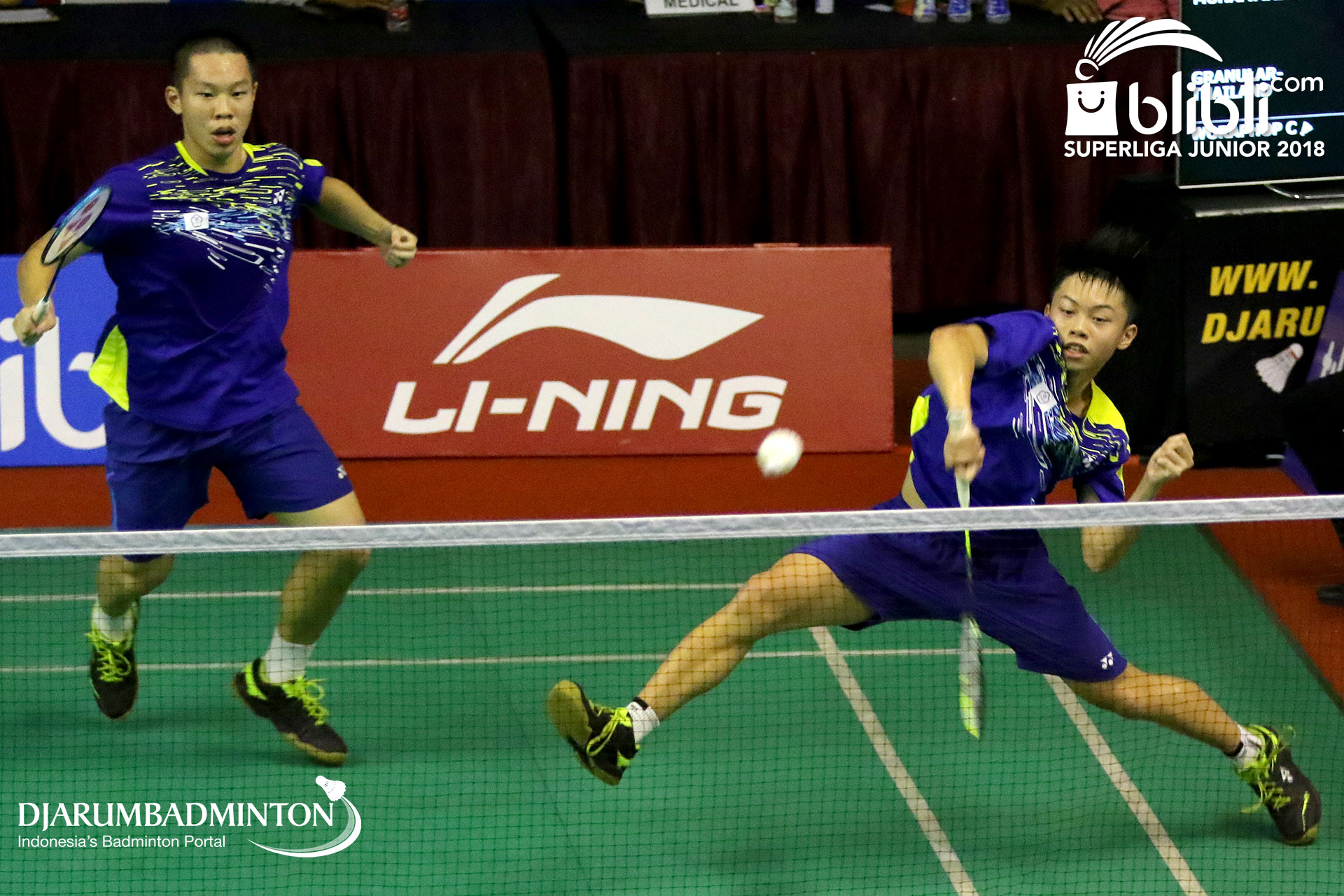 Jian,You-Cheng/Su,Chun-Chi (KEELUNG HIGH SCHOOL-CHINESE TAIPEI) melepaskan serangan