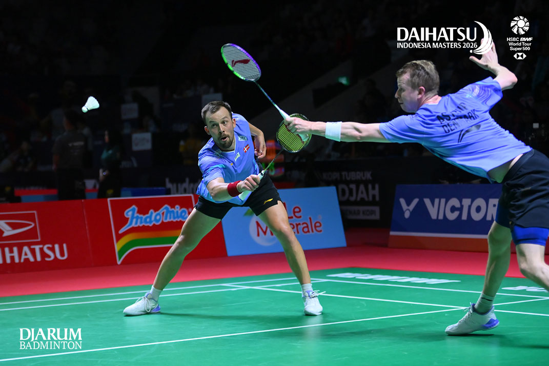 Aksi ganda putra Denmark, Kim Astrup/Anders Skaarup Rasmussen, di babak 32 besar Indonesia Masters 2026