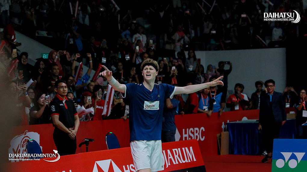 Anders Antonsen menjadi salah satu tunggal putra yang menarik untuk disimak pada gelaran Blibli Indonesia Open 2019 BWF World Tour Super 1000 nanti. Bagaimana tidak. Antonsen sukses membuat publik Istora tercengang saat membuat kejutan dengan menjadi juara di ajang Daihatsu Indonesia Masters 2019 BWF World Tour Super 500, Januari lalu, setelah berhasil mengalahkan unggulan pertama asal Jepang, Kento Momota dengan rubber game, dengan skor 21-16, 14-21 dan 21-16.