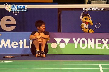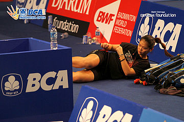 Fie Cho Soong (Malaysia) saat menunggu giliran untuk berlatih di Istora Senayan