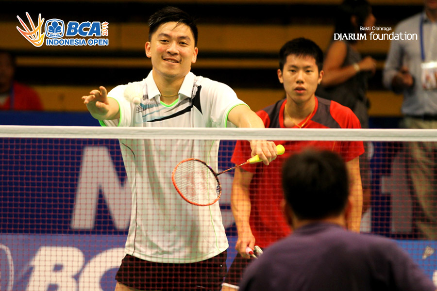 Boon Heong Tan/V. Shem Goh (Malaysia) saat berlatih di Istora Senayan