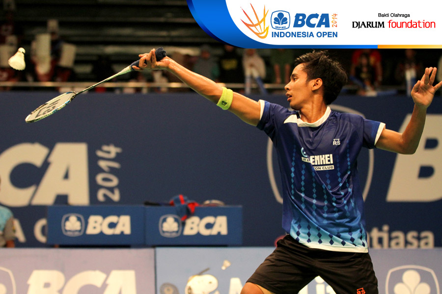 Alamsyah Yunus (Indonesia) berhasil menghadang pengembalian dari Wong Wing Ki (Hongkong)