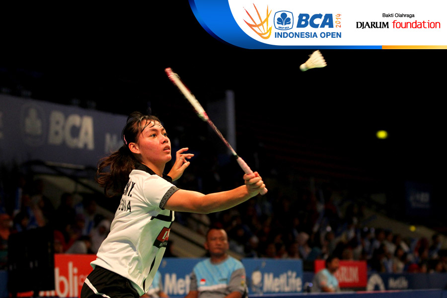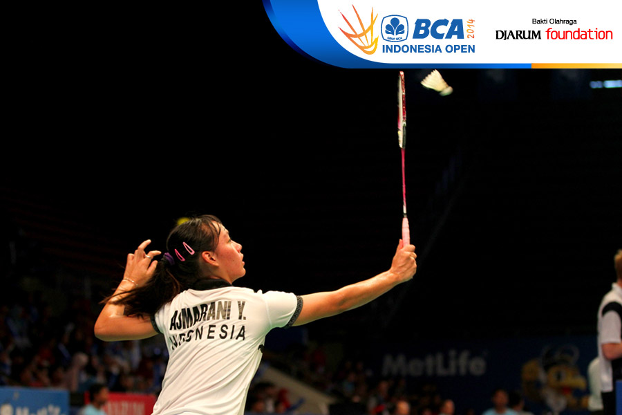 Yeni Asmarani (Indonesia) mengembalikan shuttlecock ke arah Akane Yamaguchi (Jepang)