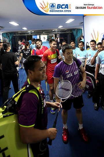 Rendra Wijaya/Rian Sukmawan (Indonesia) saat melakukan pemanasan sebelum bertanding