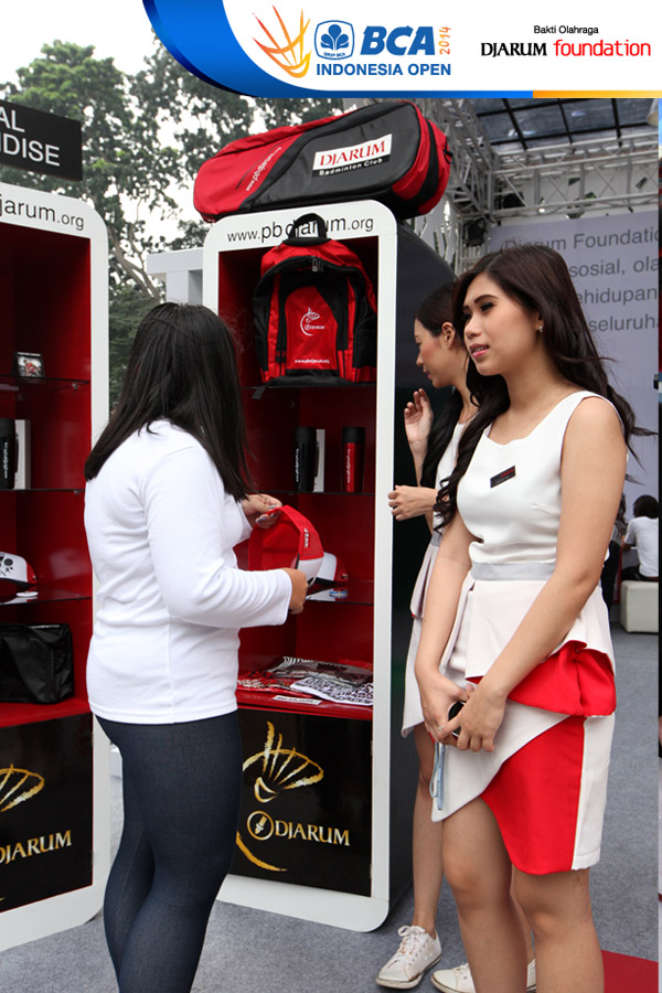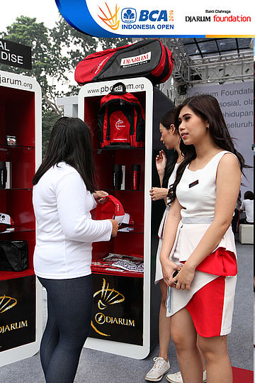 Salah satu pengunjung sedang memilih merchandise di booth Djarum Foundation