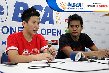 Tontowi Ahmad/Liliyana Natsir (Indonesia) saat melakukan konfrensi pers