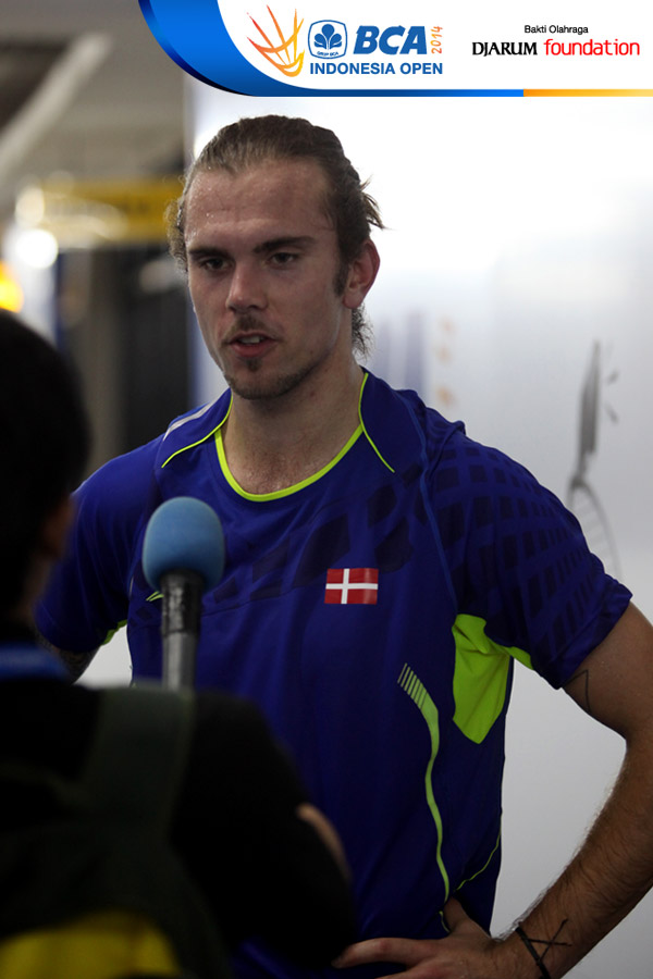 Jan O Jorgensen (Denmark) saat diwawancarai media seusai bertanding