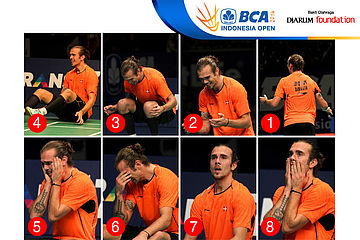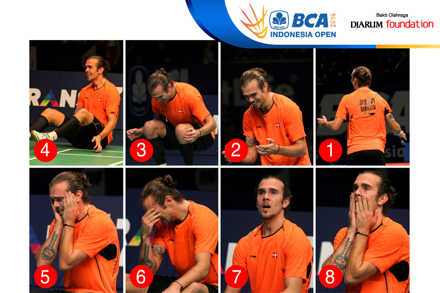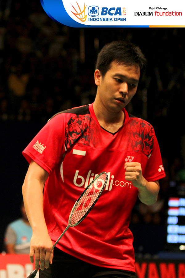 Ekspresi Hendra Setiawan (Indonesia) saat berhasil mencuri poin